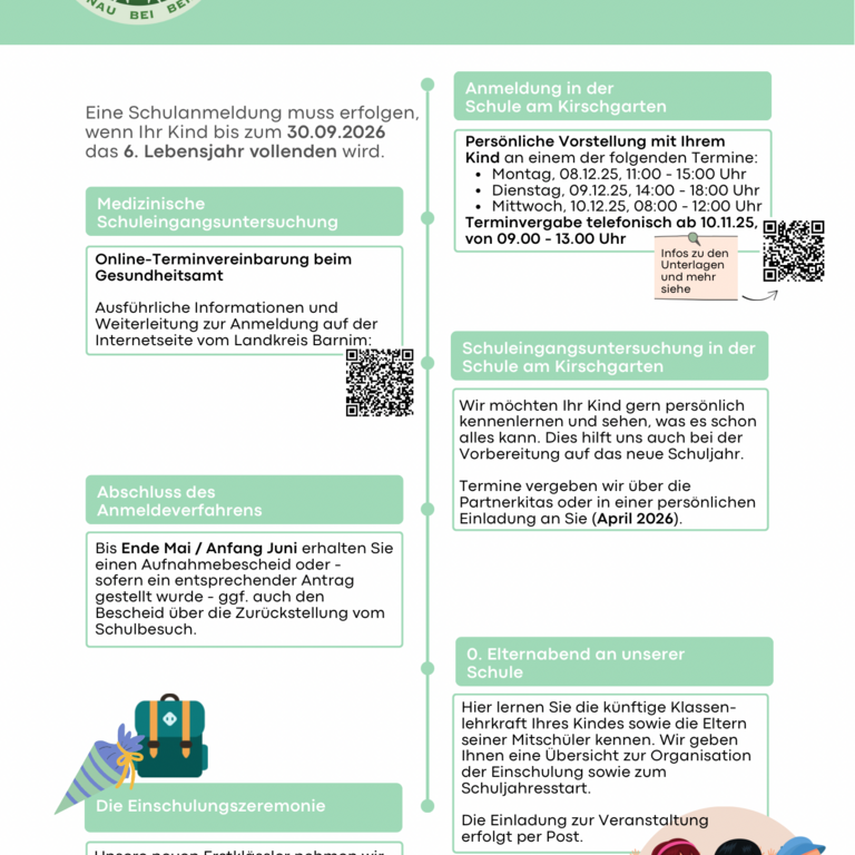 Vom 11. bis 13. November jeweils von 8 bis 15 Uhr findet in unserem Haus die Lernanfängeranmeldung statt. Sie haben zuvor einen genauen Termin per schriftlicher Einladung erhalten. Den Eingang zu den Gesprächen finden Sie gegenüber vom Haupteingang…